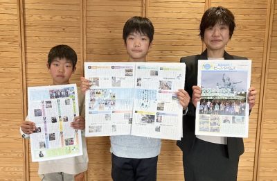 2024/03/10トピックnews小学生と保護者が長崎市に赴き原爆被害について取材を行う「親子記者事業」に参加した日向市・日知屋小6年の塩月羚太(りょうた)君(12)、弟で同2年の埜仁(なおと)君(8)、母の孝代さん(49)が4日、同市役所を訪れ活動内容を報告した。 ...