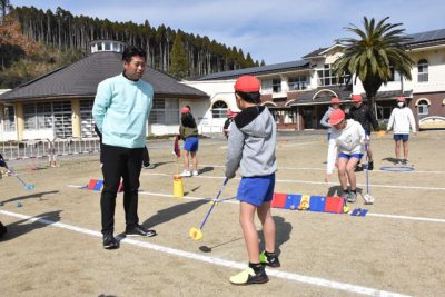 プロゴルファー池田勇太さん講師 宮崎市・鏡洲小でスナッグゴルフ講習会