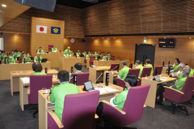 V奪還を!キャンプ地 西都 市議会でプロ野球ヤクルトのユニフォーム着用