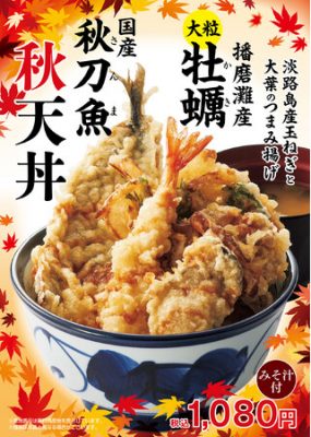 天丼てんやの秋は盛りだくさん!秋の恵みを贅沢に詰め込んだ『牡蠣と秋刀魚の秋天丼』、『牡蠣とごぼうの冷やしそば』、ちょい飲み『秋の生ビールセット』など秋の期間限定メニューを9月25日(木)より販売開始!
