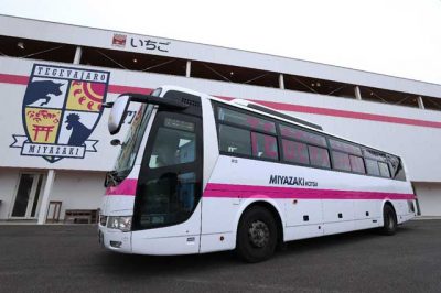 2024/02/24トピックnewsサッカーJリーグ3部(J3)・テゲバジャーロ宮崎は24日、開幕戦が行われる新富町の本拠地「いちご宮崎新富サッカー場」(いちご、旧ユニリーバスタジアム新富)の改修状況と、新たに導入したラッピングバスを報道関係者に公開した。 「子ども...