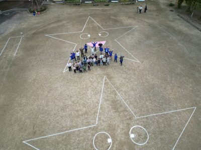 鏡洲小児童 地上絵に挑戦 県土地家屋調査士会が指導 宮崎市