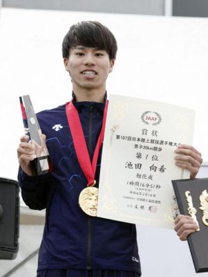 2024/02/19県内一般ニュースパリ五輪代表選考会を兼ねた陸上の日本選手権20キロ競歩は18日、神戸市六甲アイランド甲南大周辺コースで行われ、男子は東京五輪銀メダルの池田向希(旭化成)が1時間16分51秒で2連覇を果たした。日本陸連の派遣設定記録(1時間19分30秒)を...