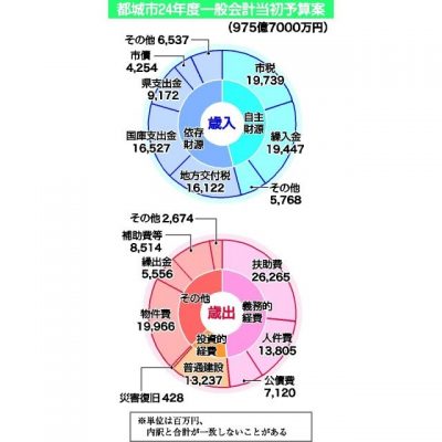 2024/02/16県内一般ニュース都城市は15日、2024年度一般会計当初予算案を発表した。総額は23年度比0・7%増の975億7千万円で、6年連続で過去最大を更新した。新規事業は102件。人口減少対策をさらに推進するとともに、防災・減災への取り組みも強化する。22日開会...