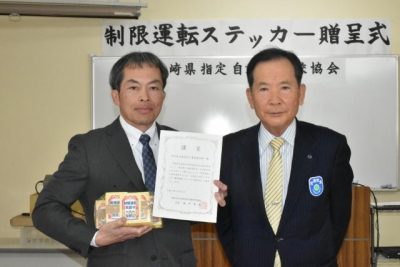 高齢者事故減へ「制限運転」 県に宣誓ステッカー贈呈 自動車学校協会