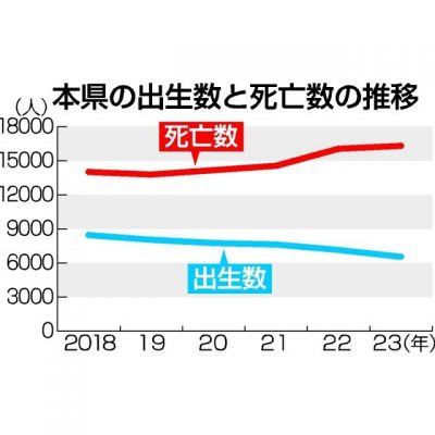 2024/01/26県内一般ニュース2023年の本県の出生数は6552人で、前年から8・4%(603人)減少し、初めて7千人を割り込んだことが25日、県のまとめで分かった。一方、昨年1年間に死亡した人は前年比259人増の1万6315人で、県の統計が残る中で最多となり、出生数...