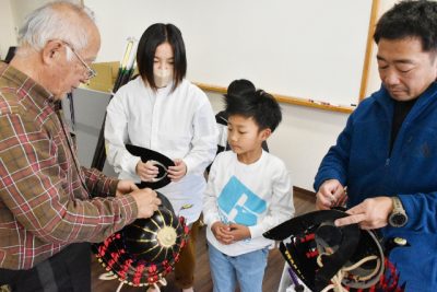 武者行列参加の児童がよろいかぶと作り 「島津入城420年記念祭」で着用