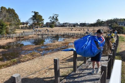 希少植物 春の芽吹き楽しみ 川南湿原で守る会ら枯れ草運び出し
