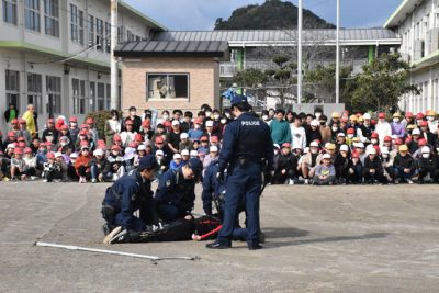 2024/01/12トピックnews日南署(橋元裕明署長)は10日、「110番の日」に合わせ、日南市・油津小(根井誠校長、234人)で出前教室を開いた。全校児童はクイズや模擬訓練を通じ、110番通報の適切な使い方を学習した。 教室は運動場で行い、署員が110番通報し...