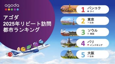 アゴダが「2025年アジアのリピート訪問都市ランキング」を発表