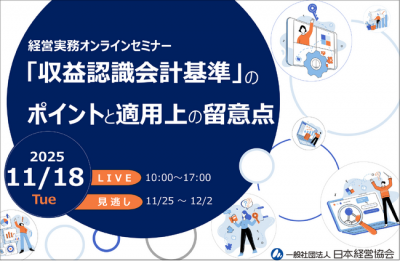 収益認識会計基準のポイントと留意点をわかりやすく解説! ― 経理・財務・経営管理部門向けオンラインセミナー【見逃し配信あり】2025/10/28サンプル一般社団法人日本経営協会(NOMA)上場企業へのIFRS導入支援やIPO準備会社の決算支援に携わってきた現役の公認会計士が、最新の実務課題をわかりやすく解説 一般社団法人日本経営協会(本部事務局:東京都渋谷区、会長:高原 豪久)は、経理・... 続きを読む