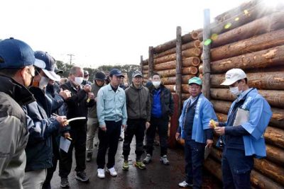 2024/01/06地域の話題都城原木市場(上原昭一代表)の新春初市は6日、都城市立野町の同社であった。市内や鹿児島、熊本県などから訪れた製材業者ら約50人が、高く積み上げられた丸太の品質を見定めながら落札していた。 最初に式典があり、上原代表が価格安定を願っ...
