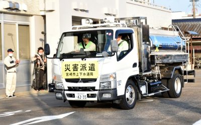 2024/01/06社会news能登半島地震への支援として宮崎市は6日、給水車(3トン)1台と水道局職員6人の本県第1陣を、被災した石川県へ派遣した。金沢市に7日到着後、能登、穴水町で応急給水活動を行う。 全国の水道事業体が加盟する日本水道協会(東京)からの要請...