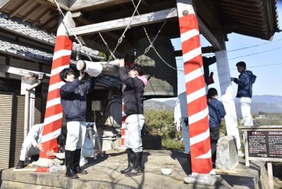 1年の感謝込めすす払い 延岡市・城山の鐘
