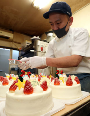 あすクリスマスイブ 宮崎市菓子店 ケーキの仕上げピーク