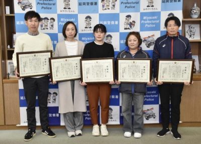 意識不明の女性救命 会社員ら5人に感謝状 延岡署