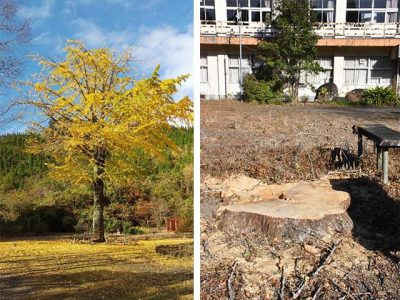 地域のシンボル「イチョウ」 事前説明なく市が伐採 日南市・旧黒荷田小