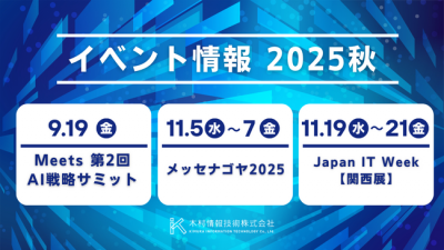 2025/09/10サンプル木村情報技術株式会社 木村情報技術株式会社(本社:佐賀県佐賀市、代表取締役:木村 隆夫、以下「木村情報技術」)は、2025年秋に開催される下記3つのイベントに参加し、最新のAI関連サービスをご紹介いたします。 今回のイベントでは、当社の...