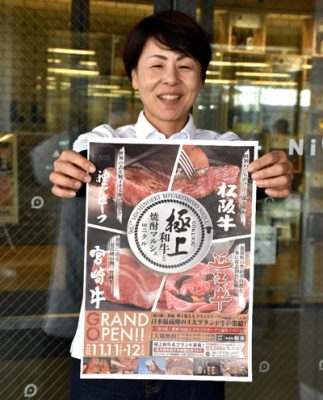 2023/11/10県内一般ニュース存分に味わって―。都城市の道の駅「都城NiQLL(ニクル)」で11、12日、宮崎牛、松阪牛、神戸ビーフ、近江牛のブランド牛を味わえるイベントが開かれる。新たな駐車場(50台分)が整備された同施設のグランドオープンを記念した「極上和牛と焼酎...