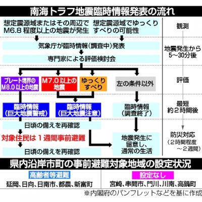 南海トラフ地震臨時情報 周知進まず 宮崎県内自治体、対応苦慮