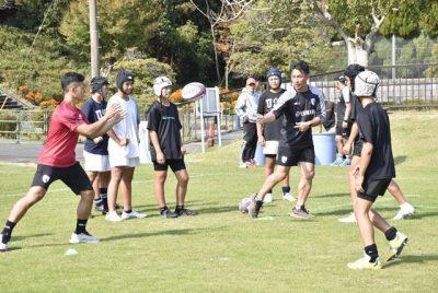 ブルーレヴズがラグビー教室 パスやタックルの基本学ぶ 延岡