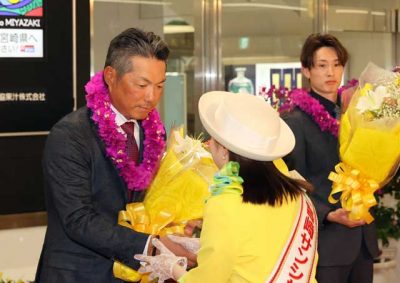 2023/11/01きょうの出来事プロ野球・福岡ソフトバンクホークスは1日、宮崎市生目の杜運動公園で行う秋季キャンプのため本県入りした。宮崎ブーゲンビリア空港には多くのファンが駆け付け、2軍監督を経て就任した小久保裕紀監督と選手を温かく出迎えた。 本県でのキャンプ...