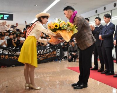 2023/11/01県内一般ニュースプロ野球・巨人が31日、秋季キャンプのため本県入りした。宮崎ブーゲンビリア空港で歓迎セレモニーがあり、阿部慎之助新監督や選手ら約10人が出席。2年連続Bクラスからの巻き返しを誓った。 式典では、多くのファンや関係者らが拍手で出迎え...