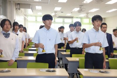 小村寿太郎の功績しのび、日南学園生らベル鳴らす 日南市役所で「ベル・リンギング」