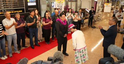 2023/10/27県内一般ニュース国内外の本県県人会員が初めて一堂に集う県人会世界大会(実行委主催)は27日、宮崎市のシーガイアコンベンションセンターで開幕する。26日は同市の宮崎ブーゲンビリア空港で歓迎セレモニーがあり、県や宮崎空港ビルの職員ら約30人が到着した県人会員...