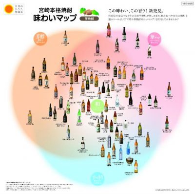 2023/10/20トピックnews県産焼酎の消費拡大や認知度アップを図ろうと、県は県酒造組合(会長・渡邊眞一郎京屋酒造社長)の協力を得て、県内27蔵元の芋焼酎74銘柄の特長がひと目で分かる「宮崎本格焼酎味わいマップ」を作成した。清酒や泡盛は先行事例があるが、県単位での焼酎...