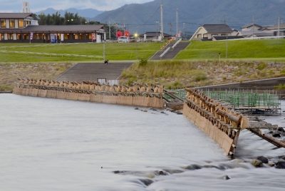 秋の風物詩「鮎やな」完成 延岡・大瀬川