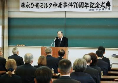 2025/09/07国内外ニュース 主要粉ミルクに大量のヒ素が混入し130人の乳児が死亡した森永ヒ素ミルク事件から今年で70年となり、和歌山県高野町の高野山大で7日、犠牲者を慰霊する式典が開かれた。森永乳業(東京)と被害者団体が主催。1万人を超す被害者が高齢化する中、参列者は「...