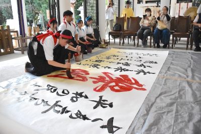 宮崎大宮高生、平和願い込め揮毫 国連平和デー記念