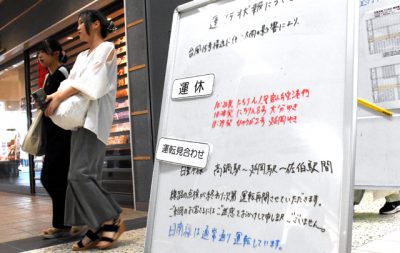 2025/09/05トピックnews台風15号の接近から一夜明けた5日、県内では浸水や土砂崩れなどの被害が確認された。新たな人的被害はないものの、住民は後片付けに追われ、通行止めを回り道するなど不便も強いられた。鉄道は一時運転を見合わせる路線があり、駅では疲れた様子で運行再...