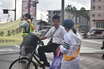 歩行者に優しい運転を 江平五差路交差点で街頭啓発