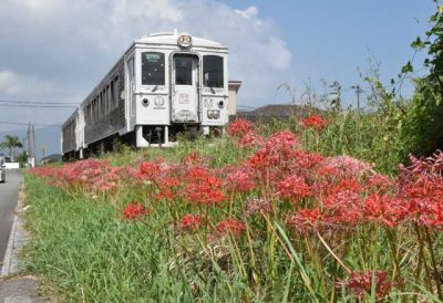 秋の訪れ告げる JR日南駅近くでヒガンバナ見頃