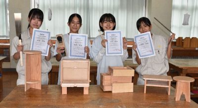 都城で中高生の木工コンペ 岡本さん(妻ケ丘中3年)最優秀