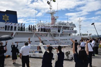 宮崎海洋高校 ハワイ沖実習へ新船で出港