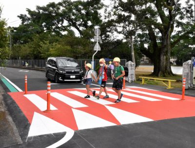県内初のスムーズ横断歩道で通学路の安全確保 えびの市