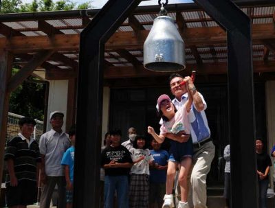 不発弾の半鐘鳴らし平和祈る 日向市平岩、籾木地区住民