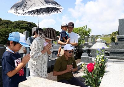 2023/08/12きょうの出来事お盆入り前の12日、県内各地の墓地や寺では多くの家族連れが墓参りに訪れた。花や線香を供えた墓前に静かに手を合わせ、先祖や亡くなった家族をしのんだ。 1万基を超す墓が並ぶ宮崎市池内町の宮崎みたま園はお盆中、混乱を避けるため園内の交通...
