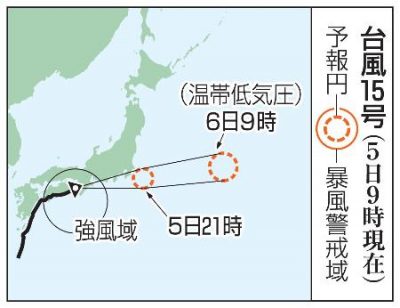 2025/09/05国内外ニュース 主要台風15号は5日午前1時ごろ、高知県宿毛市付近に上陸し、さらに午前9時ごろには和歌山県北部に再上陸した。東日本の太平洋側を東に進み、静岡県や神奈川県で線状降水帯が発生し、広範囲で大雨となった。静岡県では突風の被害が相次いだ。台風15号は5...