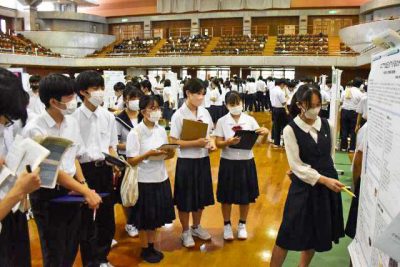 2023/07/14県内一般ニュース国連の「持続可能な開発目標(SDGs)」に沿って探究活動に取り組む県内高校生の学習成果発表会「MSECフォーラム」(県教委など主催)は13日、宮崎市のひなた武道館であった。県内18校の約1400人が参加。若者らしい視点で掘り起こした地域の...