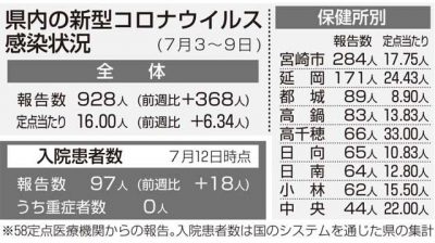 延岡・西臼杵が「赤」区分に 宮崎県内コロナ感染動向