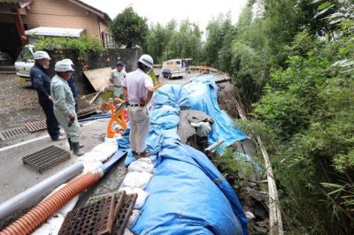 宮崎県南部山沿いで強い雨 崩落県道を復旧作業