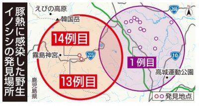 宮崎・都城で野生イノシシ2頭豚熱 ワクチン散布圏外で初