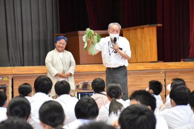 「先人の知恵に倣う」 川南・唐瀬原中で落下傘部隊学習会