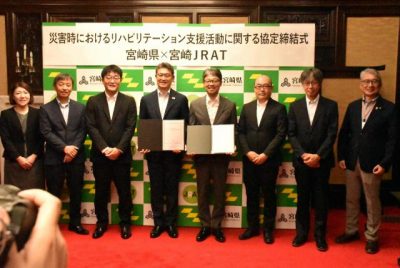 2025/09/02県内一般ニュース県と宮崎災害リハビリテーション支援関連団体協議会(宮崎JRAT、荒川英樹代表)は1日、災害時のリハビリ支援活動に関する協定を締結した。災害発生時に協力し、体を動かさない状態が続くことで心肺機能や筋力が衰える「生活不活発病」や、災害関連死の...