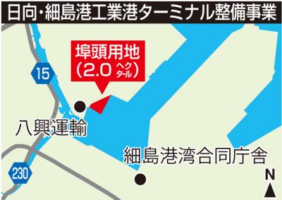 2023/05/28県内一般ニュース国土交通省と県は、日向市・細島港工業港地区の物流機能強化のため、大型化する貨物船に対応できる19号岸壁(細島港工業港地区複合一貫輸送ターミナル)を新たに整備する。完成すれば近隣で製造される化学工業品や林産品のさらなる安定供給が可能となり、...