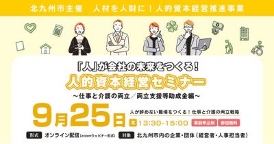 北九州市【9月25日】“人が辞めない職場をつくる”「人的資本経営セミナー ~仕事と介護の両立戦略~」参加企業・団体募集中!